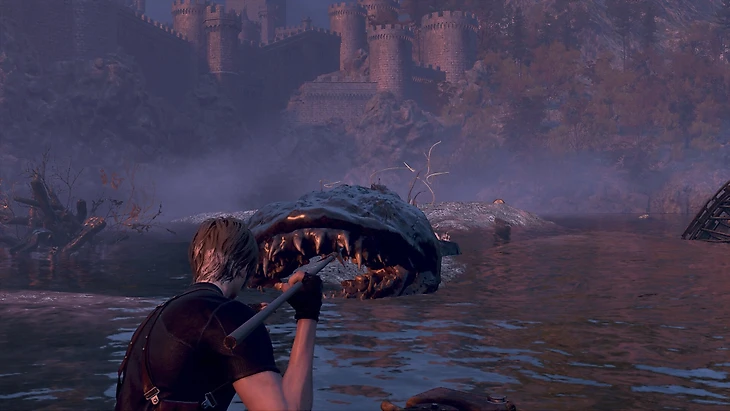 Дель Лаго попытается вас проглотить. Стреляйте ему в рот, и босс передумает. Если монстр укусит лодку, прожимайте появившуюся на экране кнопку – иначе умрете. Когда босс истечет кровью от гарпунных атак, Леон потеряет сознание, а глава закончится.