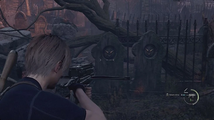 Затем исследуйте территорию церкви: найдите ресурсы и заказ на осквернение надгробий. На кладбище есть могилы с одинаковыми символами, ударьте их ножом.