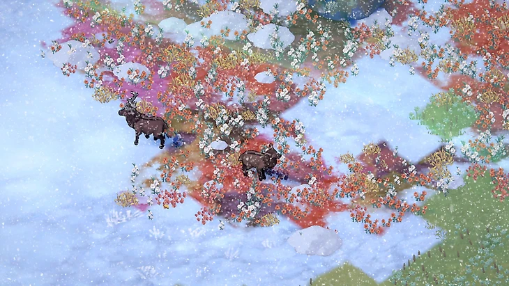 В первые минуты Terra Nil обманчиво кажется расслабляющей. Игра вводит новые правила до самого финала и заставляет чувствовать себя неуютно. Восстановленная фауна бывает некрасивой: биомы криво накладываются друг на друга, а эстетическое декорирование сложно продумать в погоне за выполнением конкретных задач. Специальная кнопка отменяет только последнее действие, поэтому иногда придется переиграть целые этапы или даже создать карту заново.
