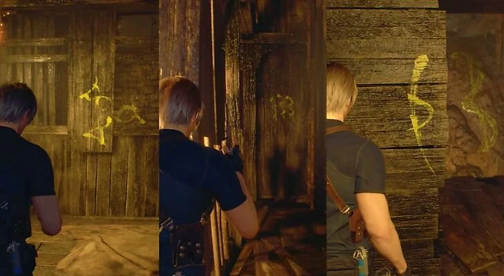 Садитесь в катер, плывите влево, ориентируясь по карте, и найдите пристань. Сойдите и будьте готовы к встрече с врагами. Они патрулируют место и вы можете попасться им на глаза. После зачистки берега поверните налево и отыщите запертую дверь. Слева от нее расположены кнопки, на некоторые из которых нужно нажать. Эти символы можно найти в пещере, вот они на картинке: