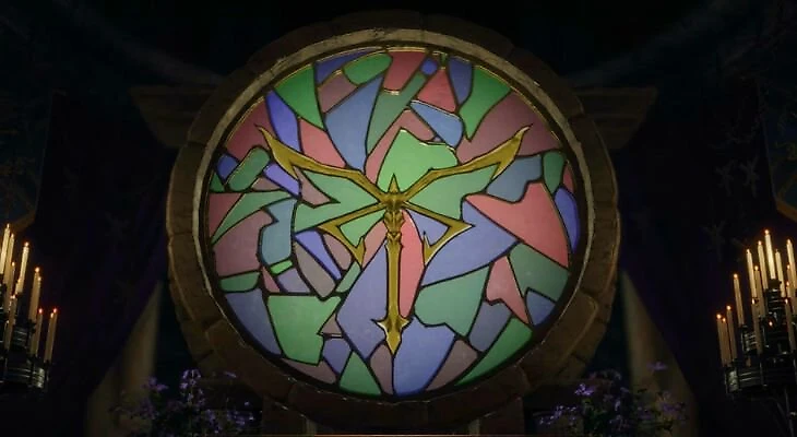 После победы над Гигантом возвращайтесь к церкви и установите ключ, чтобы попасть внутрь. Опустите настенный рычаг, который находится слева, чтобы открыть алтарь с цветными кнопками. Вам нужно собрать рисунок, чтобы получился символ местного культа.