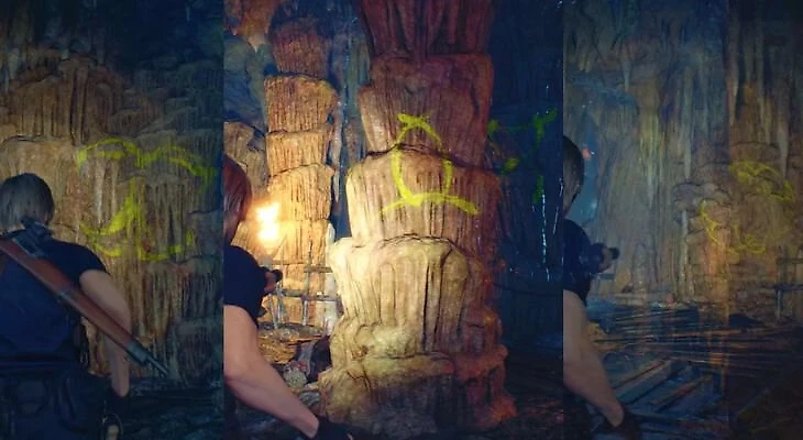 Вернитесь в главное озеро и плывите в правый верхний угол. Там вы найдете пещеру под зловещим замком, высадитесь на деревянной платформе. Вам нужно снова запомнить символы, они помогут вам открыть вторую дверь: