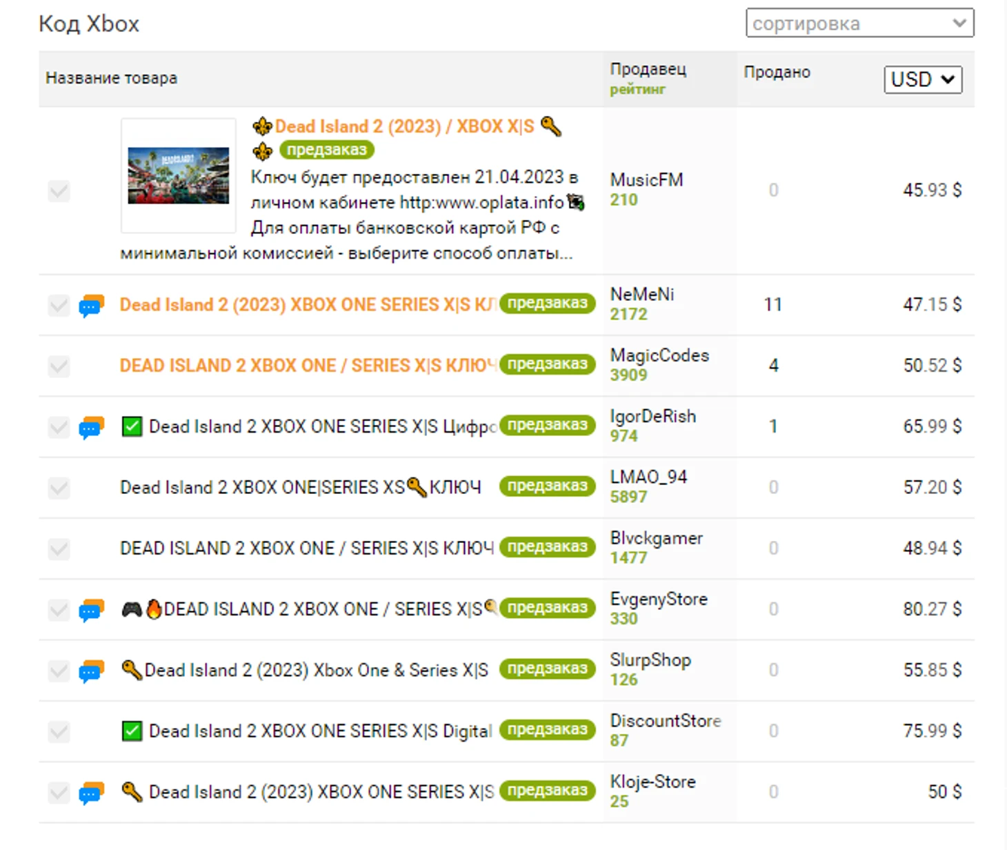 На момент написания поста на марктплейсах есть десятки предложений о продаже кода Дед Айланд 2 для Xbox. Перед покупкой такого кода обязательно прочитайте описание продавца – важно купить код для того же региона, что и ваш аккаунт.
