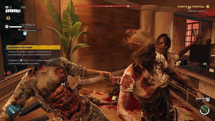 В сюжетном задании герой попадает в отель. Смело ходите по территории, зачищайте номера, гуляйте у бассейна – но на подземную парковку не суйтесь. Высокоуровневые зомби накинутся и быстро откатят к началу локации. А ведь в пылу драки сверхсильного моба легко не заметить.