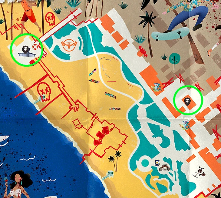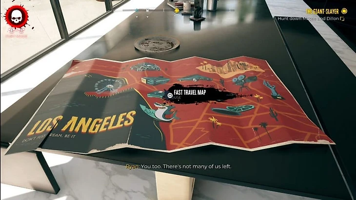 Вы могли заметить на столах разложенные туристические карты – это и есть система быстрого перемещения. Но ее нельзя открыть с начала игры, только когда вы зачистите несколько стартовых локаций, то сможете быстро перемещаться между точками. Нужно пройти задания в Беверли-Хиллс, отеле «Гальперин», Бель-Эйр, в «Монархе», а также пройти канализацию.