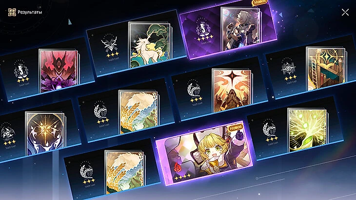 Первые 7 раз вам будет падать герой и эйдолоны для прокачки его пассивных талантов. Если вы получите дубликат в восьмой раз, то он сконвертируется в 100 Звездного света. Не может выпасть два героя одновременно за одну крутку.