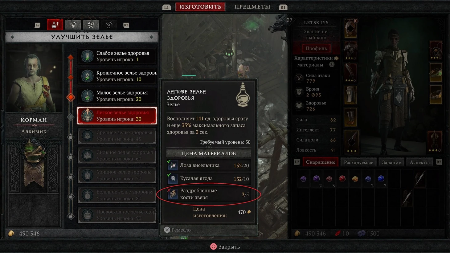 В Diablo 4 герой добывает горные породы, срывает целебные травы и достает внутренности из поверженных врагов. Все ресурсы важны для крафта и улучшения зелий. Обычно с расходниками нет проблем, но раздробленные кости зверя придется поискать.