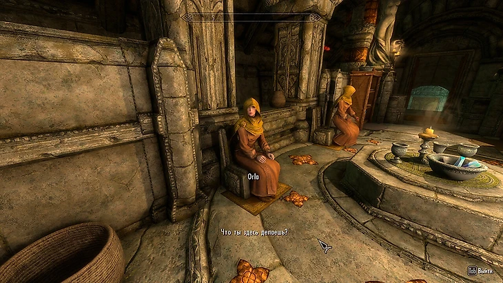 В оригинальном квесте, когда Довакин-мужчина заходит в храм Дибеллы, жрицы начинают сердиться на него. Могут даже напасть, если украдете ключ во внутреннее святилище храма, чтобы похитить статую по одному из квестов. Там запрещено находиться не только мужчинам, но и женщинам не-жрицам.