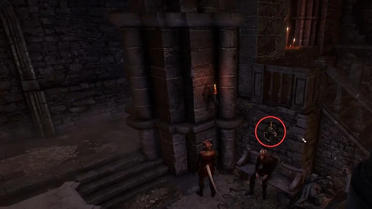 Не хотите крутить диски? Тогда возьмите самого внимательного персонажа и подойдите к скамейке у закрытого прохода. Если повезет, заметите там рычаг.