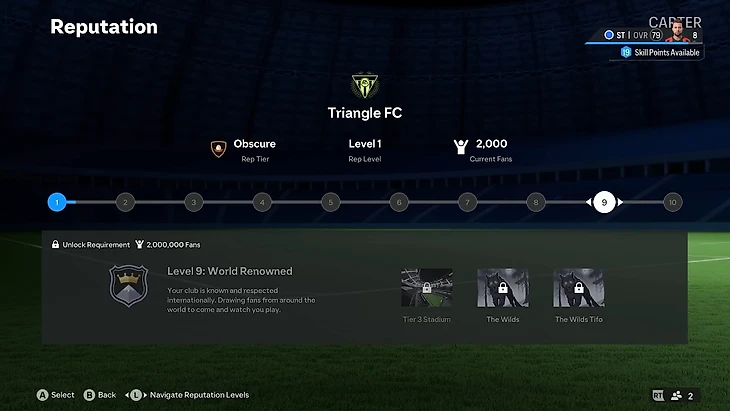 Команда будет копить репутацию после каждого матча. От ее уровней зависит скилл доступных ИИ-партнеров, стадионы и аксессуары фанатов.