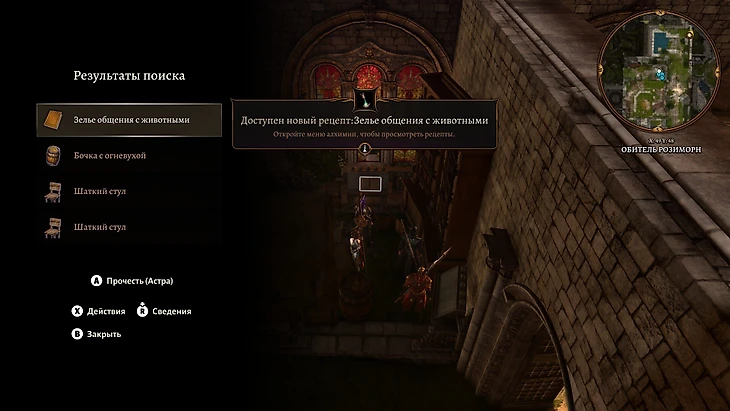 Изначально герой готовит лишь простейшие зелья вроде слабых хилок. Чтобы прокачаться в ремесле, ищите книги с рецептами. Например, в храме над яслями гитьянок есть рецепт зелья общения с животными, а в таверне «Последний свет» вы найдете инструкцию по созданию прокаченных зелий лечения.