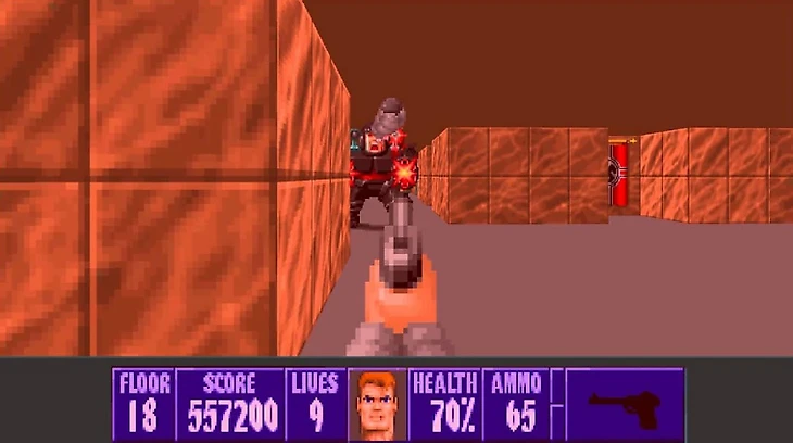 В Wolfenstein 3D появилась возможность восстанавливать здоровье. Однако нужно постараться отыскать аптечки в локациях, и при этом не попасться на глаза врагам. Изначально игра выходила на DOS платформу. Через некоторое время Wolfenstein 3D был адаптирован на: