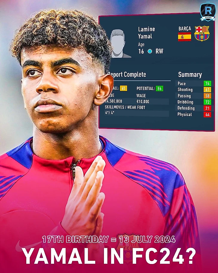 Но чем провинился Ямаль? Общепринятый возраст футбольной зрелости – 16 лет. Ламин Ямаль родился 13 июля 2007 года, поэтому, по логике EA, ему сейчас меньше 16 лет. Если разработчики не сделают исключение, молодой футболист «Барселоны» появится лишь в FC 25.