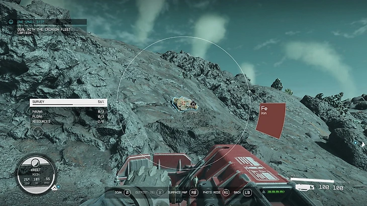 Герою постоянно нужны ресурсы. Они тратятся на крафт аптечек, прокачку оружия, постройку аванпоста. Простейший способ собрать материалы – бегать по планете со включенным сканером. Заметили залежи железа, меди и серебра? Достаньте лазерную пушку и стреляйте.