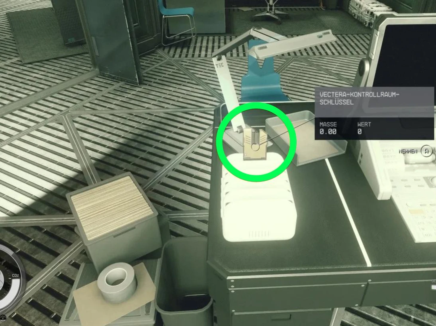 Сначала зайдите в офис слева и возьмите со стола ключ от комнаты управления Vectera (его легко не заметить):
