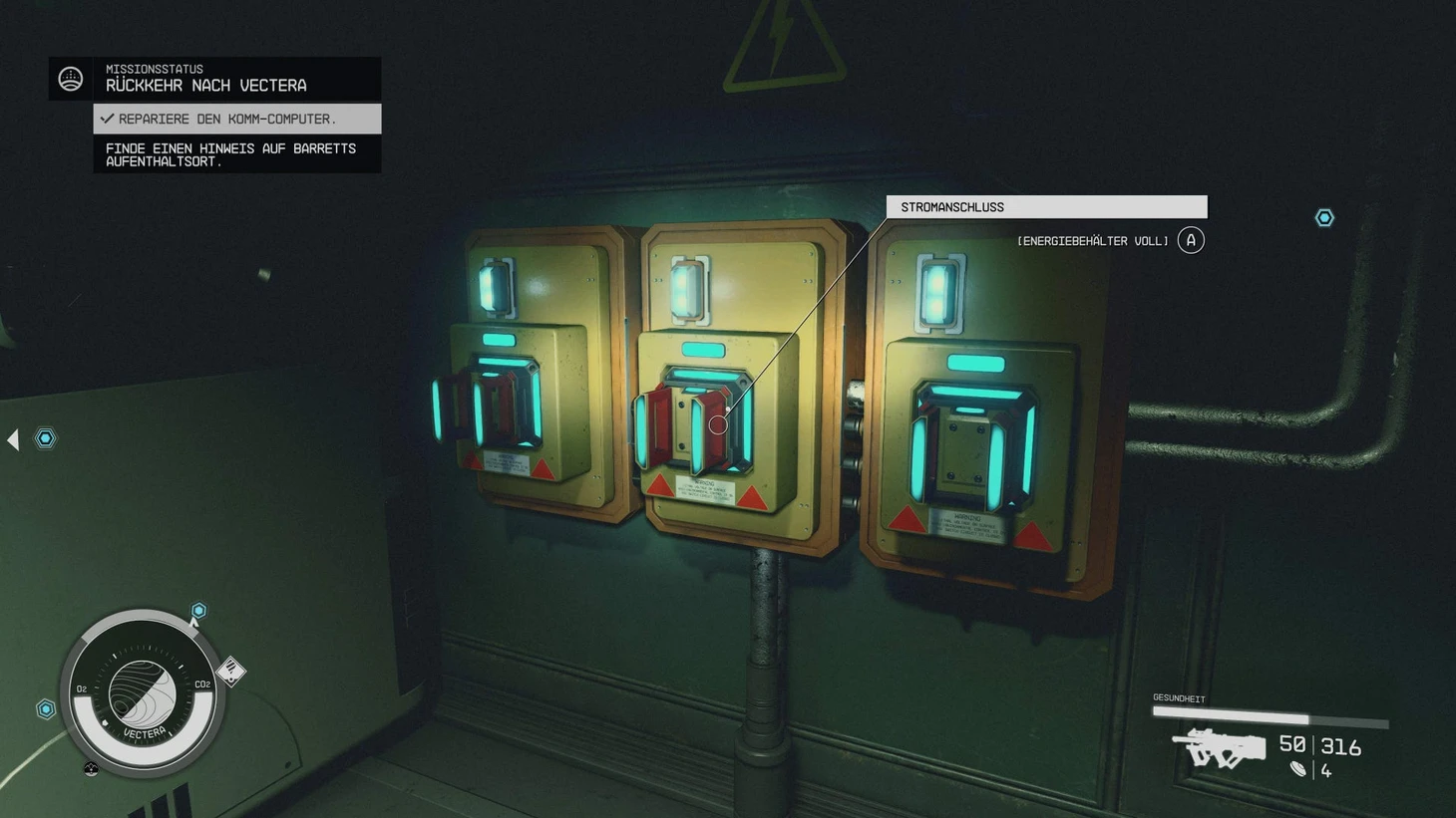 За дверью находится компьютер связи, но он не имеет питания. Щелкните по нему и сначала выберите среднюю точку «Поиск источника энергии» (Search for energy source). Это даст возможность выполнить опциональное задание.