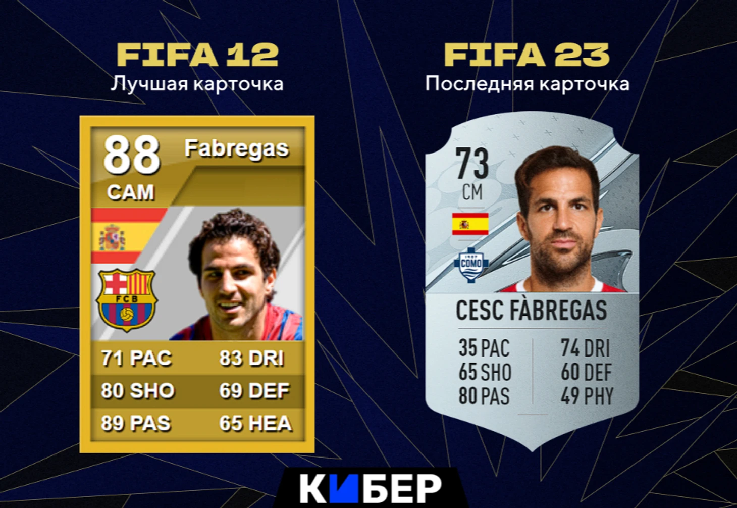 Долгая карьера Сеска Фабрегаса понемногу выветривается из памяти. Молодой испанец зажигал в «Арсенале» Арсена Венгера, а к концу 2010-х заинтересовал «Барселону» и отлично влился в полузащиту «блауграны» – даже получил топовую карточку в FIFA 12. Неудачный сезон-2013/14 испортил отношения между клубом и игроком: в прощальном письме «Барселона» обвинила футболиста в спаде, а Сеск рвался обратно в Англию – и на несколько лет усилил центр «Челси». После 30 лет Фабрегаса замучили травмы, и испанец тихо закончил карьеру в итальянском «Комо» из Серии B.