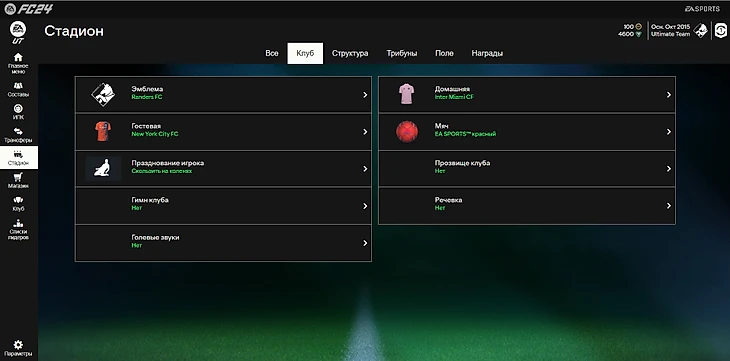 В меню стадиона меняйте эмблему, форму, мячи, речовки фанатов и многие другие второстепенные элементы клуба.