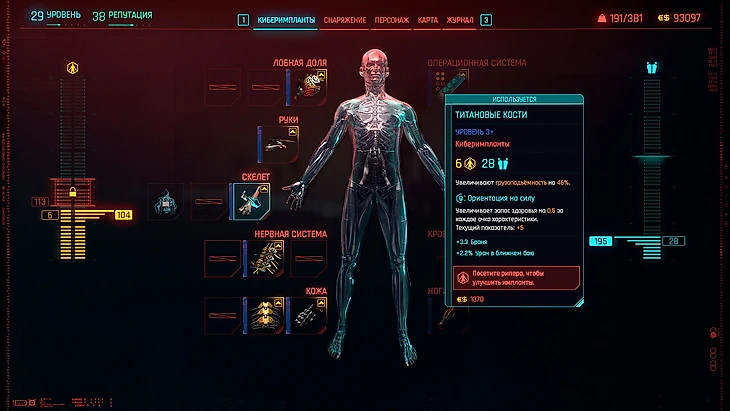 Киберпротезы все так же вставляются в разные части тела, но количество модификаций ограничено параметром «Лимит имплантов» (он увеличивается по мере роста уровня). Пока он не заполнен, с Ви все нормально. Но если превысить лимит, готовьтесь к последствиям в виде киберпсихоза.