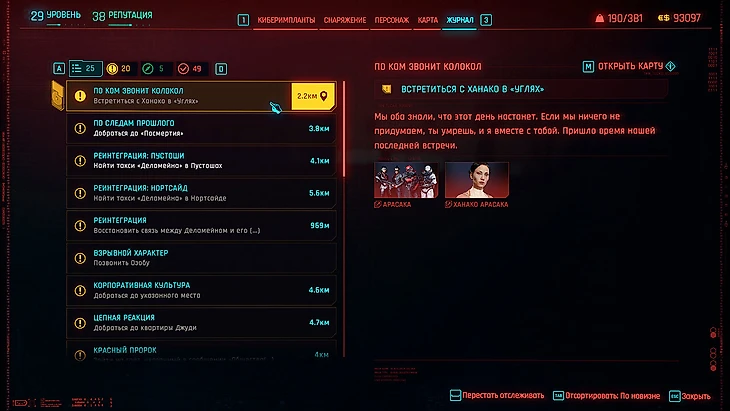 Мелкие изменения в интерфейсе сильно упростили жизнь. Например, масштаб мини-карты меняется в зависимости от скорости передвижения – прямо как в моде, который появился почти сразу после релиза игры. На ней же больше не отображаются «треугольники» с радиусом зрения врагов, с которыми Ви не вступил в бой. Отслеживание заданий можно отключить, а встреча с Ханако в «Углях» больше не висит в углу экрана после стольких прохождений альтернативных концовок.