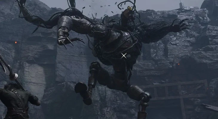 Если Тварь издаст громкий вопль, она выполнит серию из трех ударов. Каждая последующая атака будет медленнее, поэтому учитывайте это при блоке. Когда тварь поднимет правую руку, она атакует вас щупальцем. Если Тварь попадет по вам, то щупальце притянет вас к боссу.