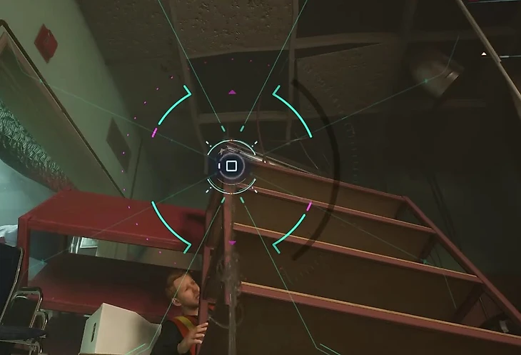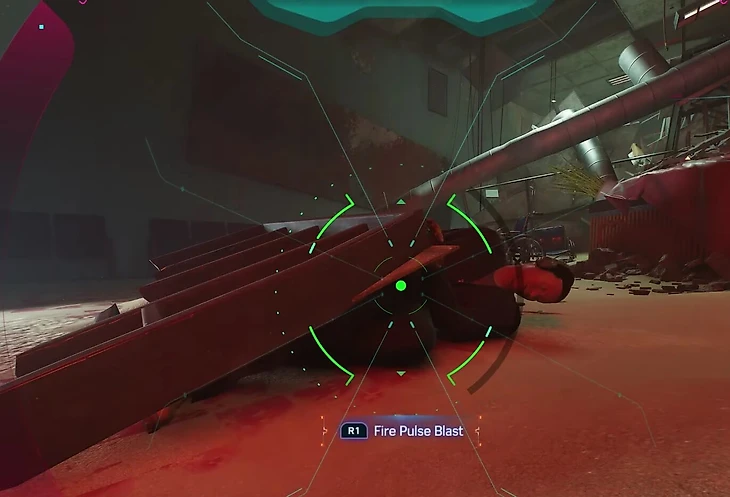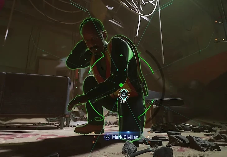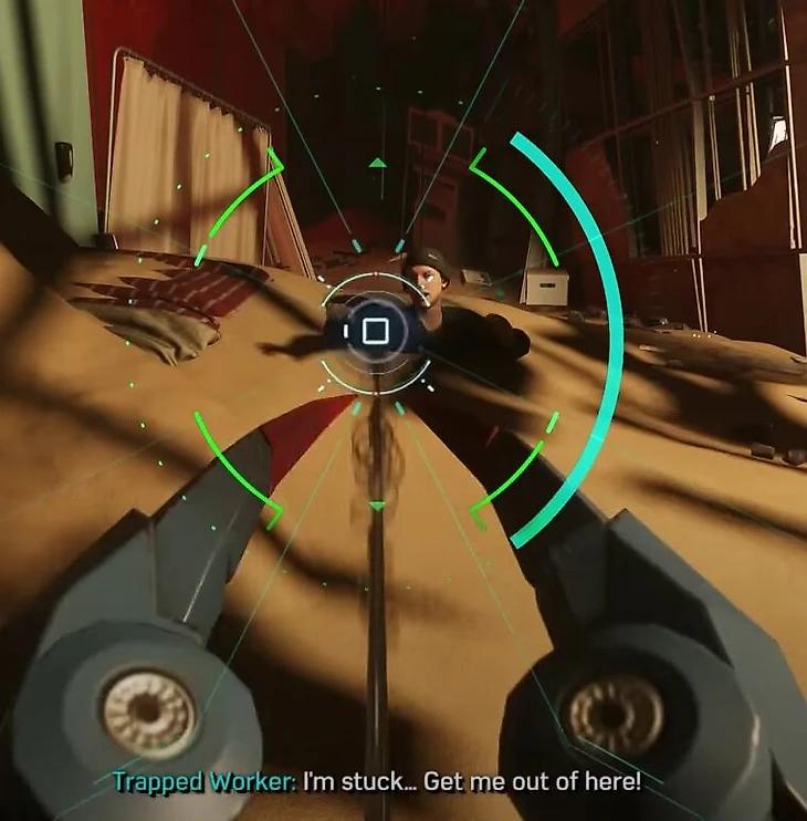 Вы должны отметить людей, оказавшихся в ловушке под развалинами, для пожарных. С помощью дрона-паука! Пролезьте в вентиляцию, чтобы найти первого заложника. Нажмите «Треугольник» для его отметки.