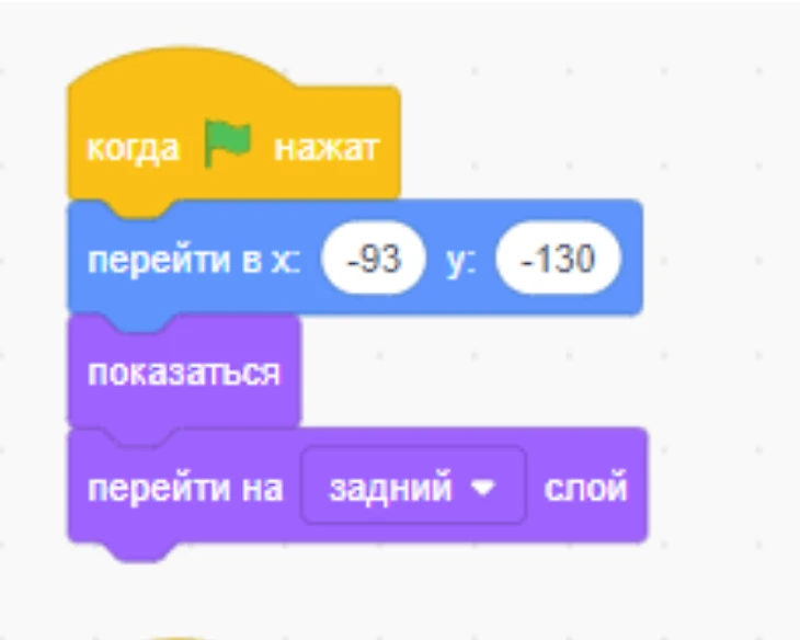 Используем блок «когда щелкнут по флажку» из категории «События» для начала выполнения кода при запуске проекта. Далее добавим блок «переключить фон» и выберем нужную клавишу.