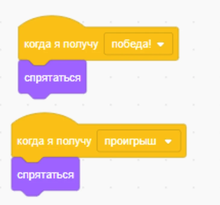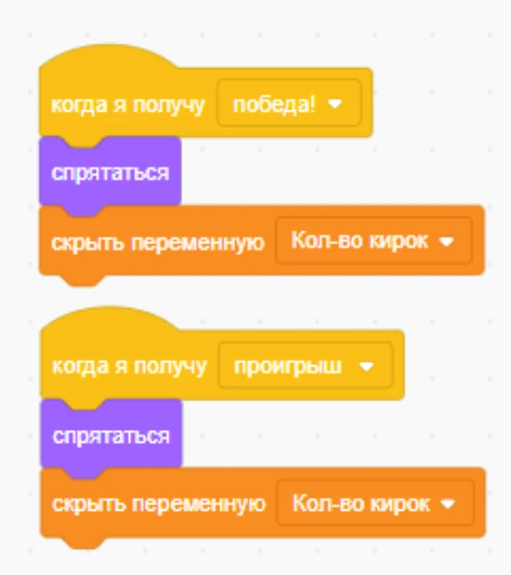 Последнее, что мы здесь добавим — это скрытие всех объектов при проигрыше и выигрыше.