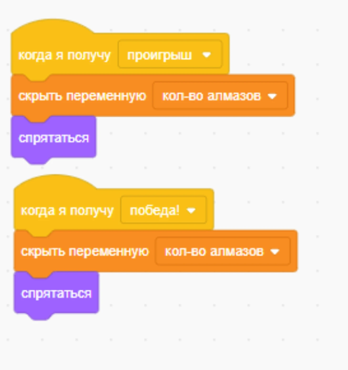 При проигрыше и выигрыше мы также скрываем все алмазы, как делали это ранее.