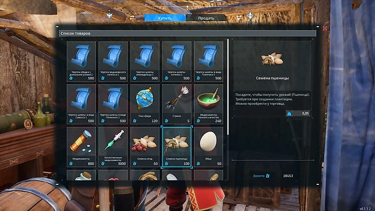 Семена пшеницы стоят 100 золотых монет. Торговец продает не только их, но и другие важные для новичка ресурсы. Среди них электротворный орган, ядовитая железа, пламетворный орган и качественные медикаменты. Кроме того, торговцу можно продать ненужные вещи.