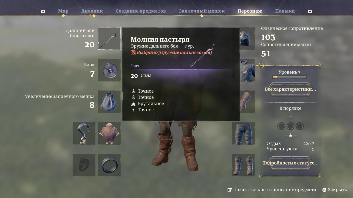 Места в хотбаре вечно не хватает: там меч, кирка, зелья, еда. Зато искать свободную ячейку для лука или посоха не нужно. Положите их в инвентарь и нажмите «экипировать» – теперь герой достанет оружие дальнего боя по нажатию правой кнопки мыши.
