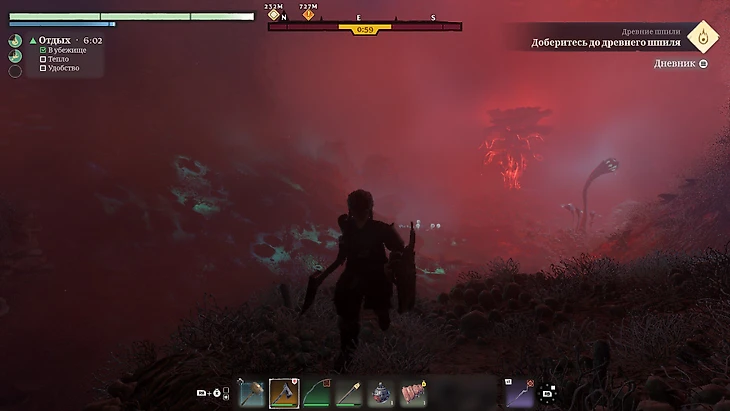 Порой вылазки затягиваются на много часов. Чтобы восстановить здоровье и получить бонусы, используйте припасы. Вода временно увеличит выносливость, приготовленное на костре мясо – увеличит полоску HP.