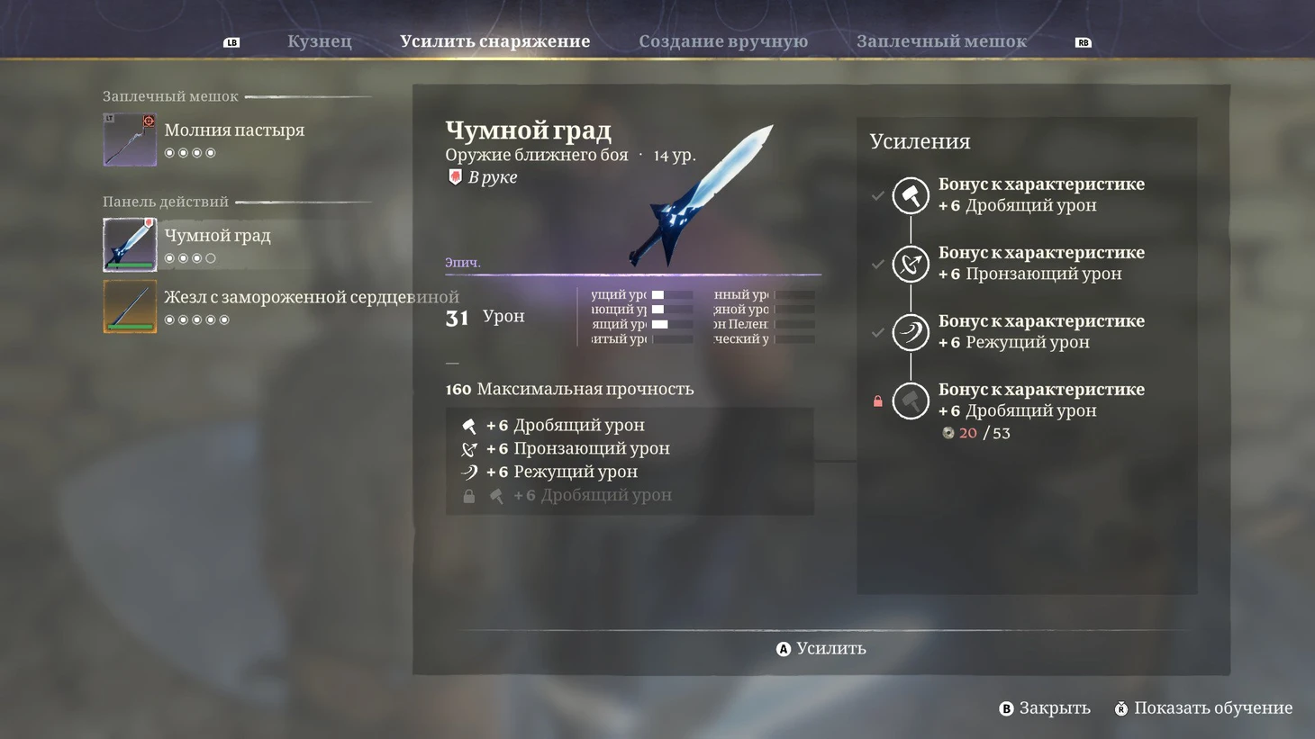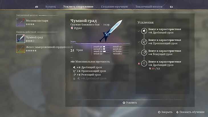Тратьте руны на прокачку оружия: так вы повысите урон клинка, лука, жезла и откроете ценный эффект. К примеру, оскверненный топор на максимальном уровне возвращает врагу часть полученного урона. Учтите, что улучшений заслуживает только эпическое и легендарное оружие, уровень которого сопоставим с уровнем героя.