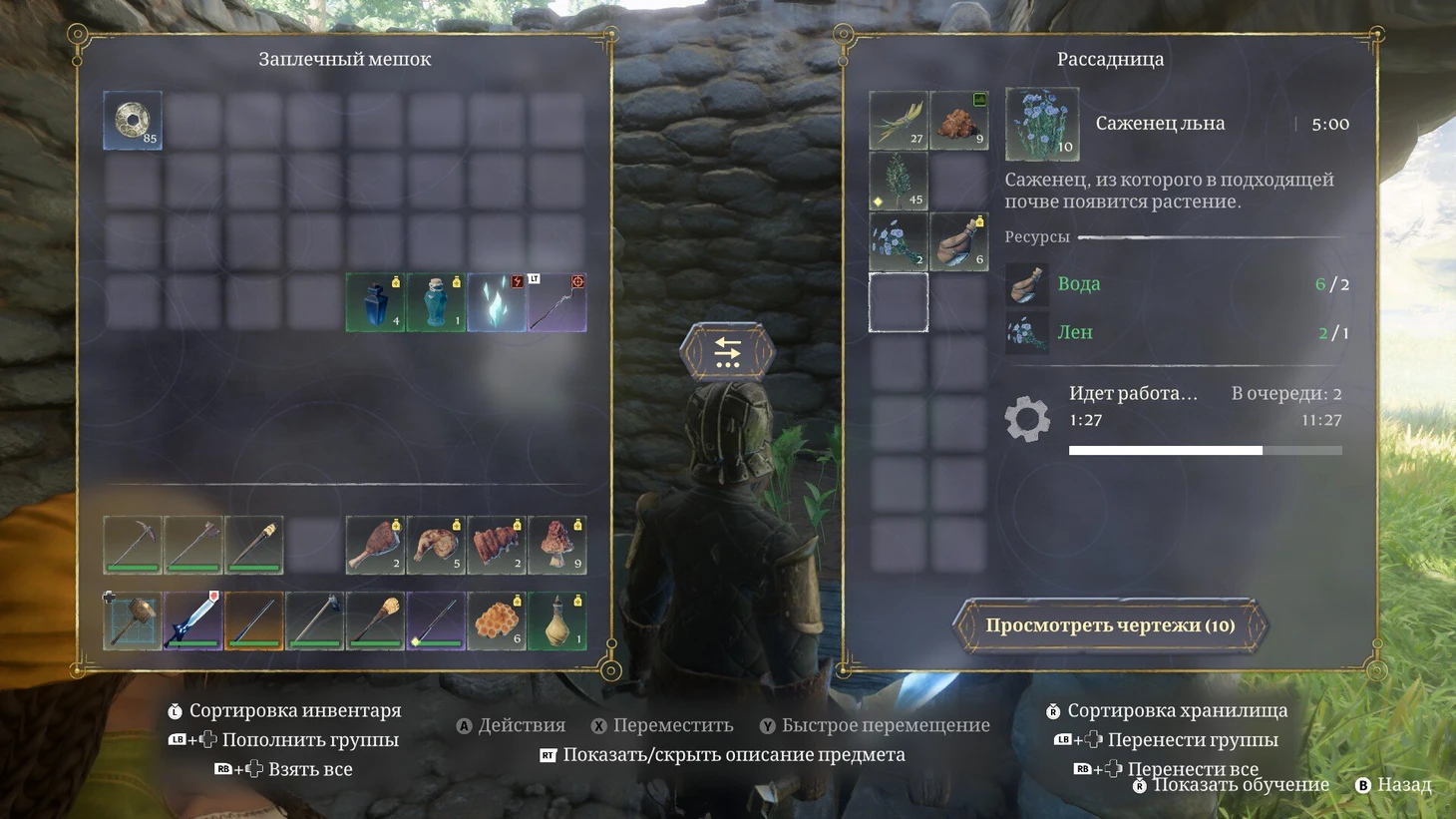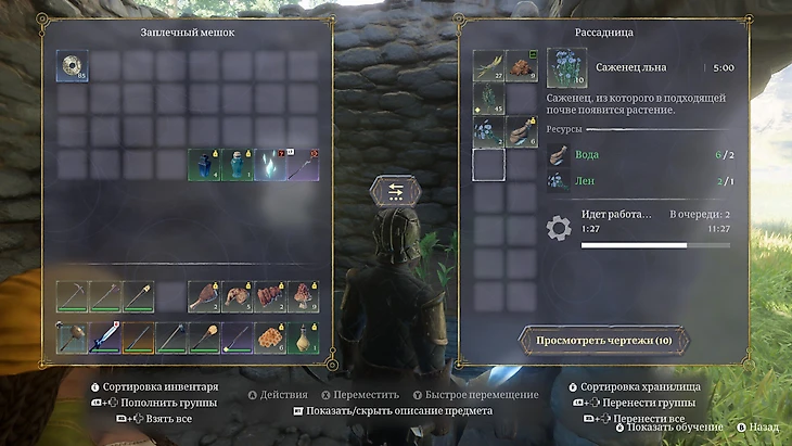Дама делает материалы для огорода: к примеру, передайте ей лен и со временем получите 10 саженцев. Так вы закроете потребность в ключевом ресурсе для создания лучшей брони.
