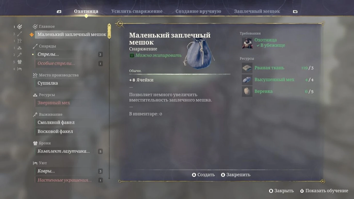 Чтобы увеличить вместимость, отыщите в крипте охотницу.