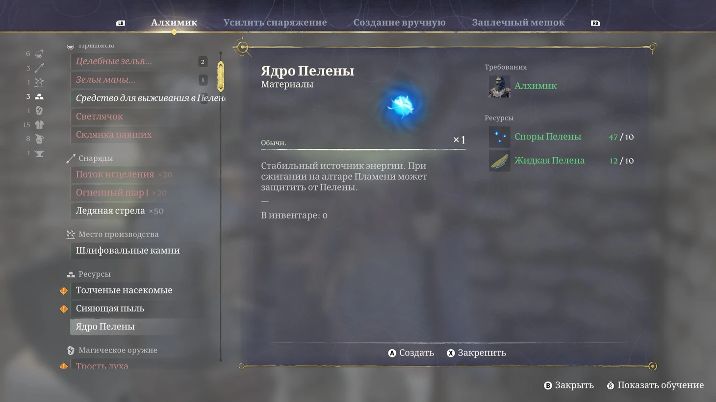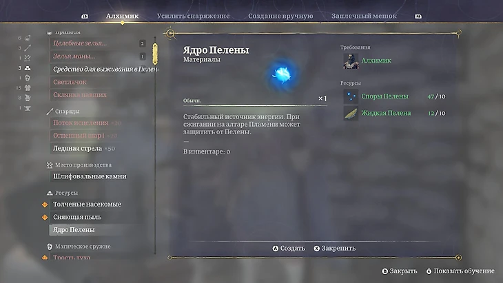 В Enshrouded полно ресурсов, которые кажутся бесполезными. Вот зачем тратить место на жидкую Пелену и споры Пелены? Поймете, когда эти вещи понадобятся для крафта особо ценного расходника.