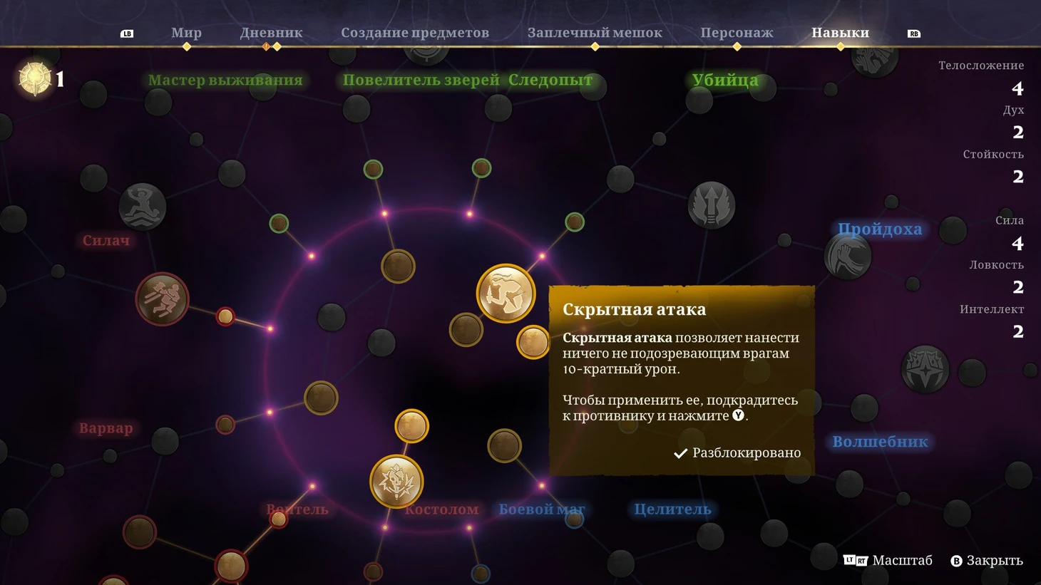 В древе прокачки есть ветка, посвященная стелсу. Лучше игнорируйте ее: враги обычно смотрят по сторонам и ходят парами, ударить их в спину слишком трудно. Зато особые атаки, парирование и усиление урона гарантированно полезны.