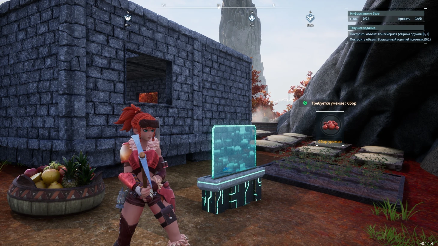 Рассмотрим постройку фермы ресурсов на примере добычи металлической руды – самой необходимой на протяжении всей игры. Найдите хороший участок залежей рядом с точкой быстрого перемещения и захватите его постройкой контейнера палов. Соорудите простой дом, обязательно постройте кормушку, ягодную плантацию, место для ночлега всех палов, горячий источник и вместительный сундук. Помогут ремонтный стол, постройка для приготовления пищи и актуальная печь для переплавки нужного ресурса.