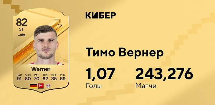 А вот Тимо Вернер вряд ли кого-то удивит. После провала в «Челси» футбольная карьера немца покатилась вниз – последняя надежда на аренду в «Тоттенхэме», зато в серии FIFA его прямолинейная быстрая карточка популярна каждую осень. Залинковать Вернера в Бундеслиге стало еще проще.