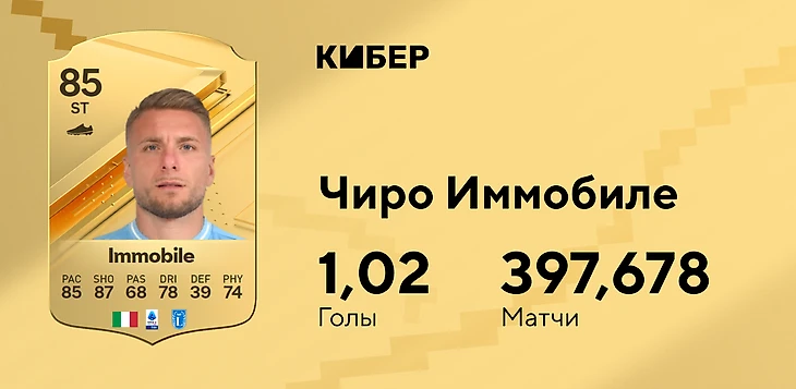 В новом сезоне плотность подборки еще выше, а последнее место разделили сразу два футболиста. Один из них – Чиро Иммобиле. Итальянский бомбардир постарел и нерегулярно выходит за «Лацио», но его простая карточка чистого нападающего с завершением 91 все еще решает. За Килиана Мбаппе (0,97) и Эрлинга Холанда (1,0) играть тяжелее.