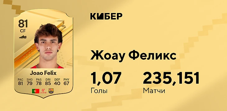 Появление Жоау Феликса в топе – большая неожиданность. Португальский форвард получил слабые характеристики скорости и ударов, пусть и финтит на 5 звезд. Похоже, фиферы разглядели большой потенциал развития карточки – базовая версия слаба даже для начального состава.