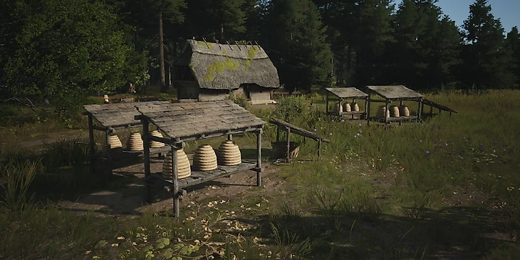 Для получения меда сначала нужно разблокировать навык «Разведение пчел» на вкладке «Развитие». После этого в меню строительства вам станет доступна пасека. Это здание можно построить в любом месте карты, но лучше всего строить недалеко от склада, поближе к дороге, чтобы минимизировать время доставки ресурсов. После строительства необходимо назначить семью на пасеку, чтобы на пасеке постоянно велась добыча.