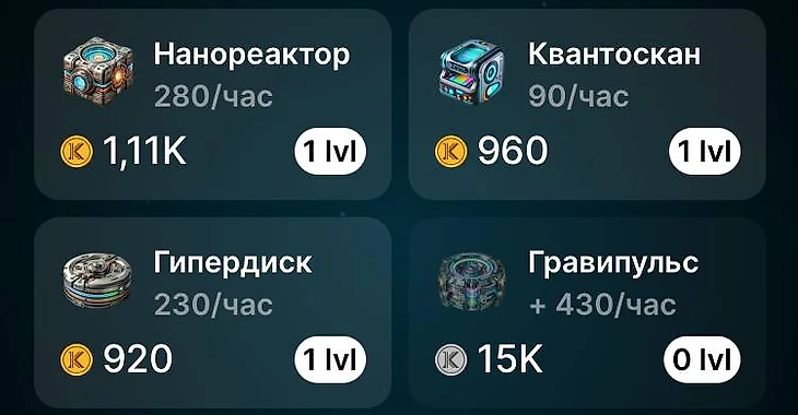 Здесь система прокачки аналогична карточкам в Hamster Kombat. У нас есть три типа улучшений – запчасти, защита и оружие. Улучшайте свой космический корабль, чтобы получать больше монет в пассивном режиме.