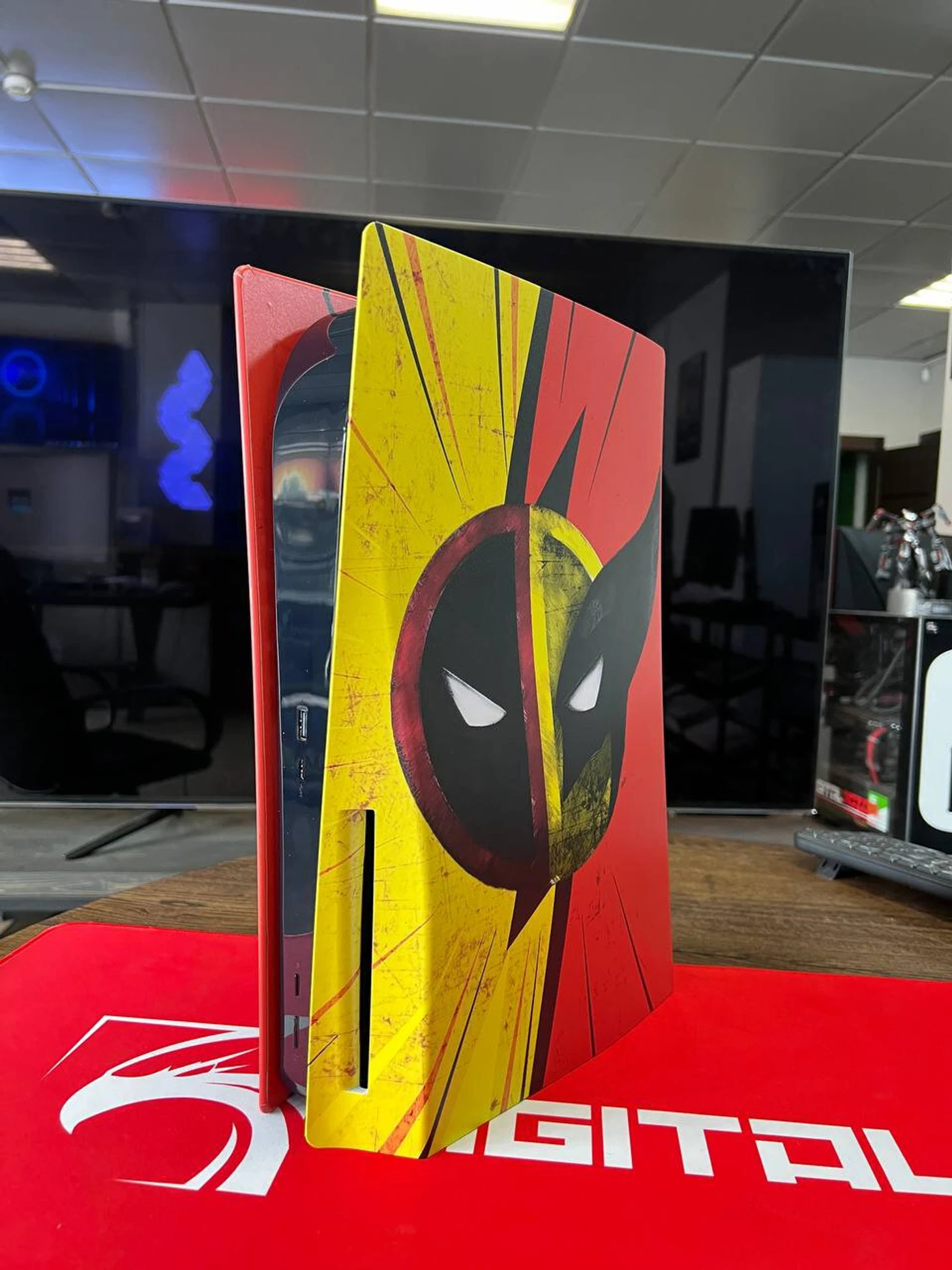 Еще мы специально для Кибера сделали кастомную PS5 к выходу «Дедпула и Росомахи». Cейчас ее как раз разыгрывают в телеграме.