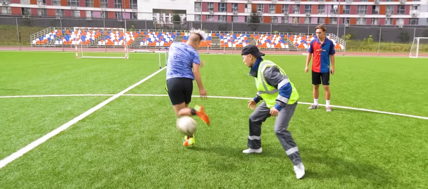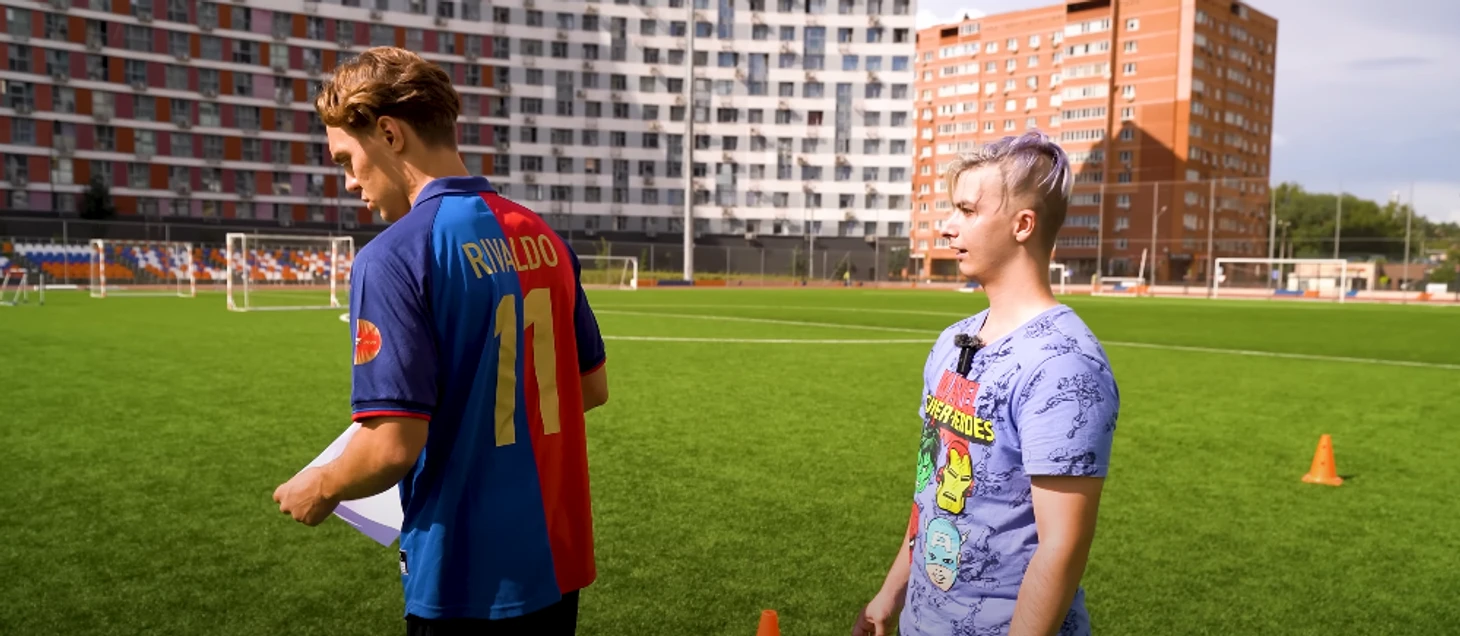 Затем было испытание на финты, чтобы понять, сколько у него звездочек – для этого нужно было повторить финты АртПо. Иван Золо справился с задачей убрать мяч под себя и даже осилил переброс на 3 звезды.