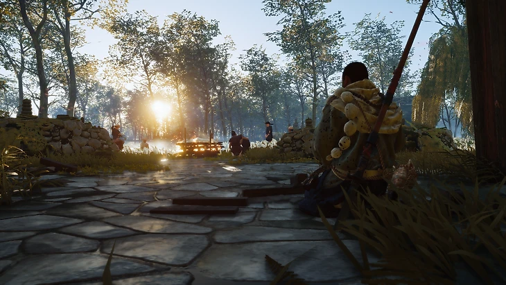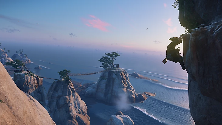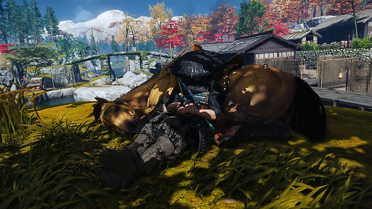 В действительности Ghost of Tsushima создаёт незамысловатый геймплейный цикл, ветрами пронося протагониста по живописным уголкам острова. Вряд ли интерактивные развлечения когда-либо ещё так точно иллюстрировали мемное «У самурая нет цели — есть путь». Цели-то, конечно, никуда не делись, они на карте отмечены. Но именно путь вызывает настоящее удовольствие от процесса. От одной точки к другой самурай проносится по одушевлённым сосновым лесам, отвлекаясь на романтичные мелкие действия. Где-то за очередным величавым древом его застанут монгольские захватчики, но их тела навечно останутся в земле уже через пару секунд. А герой, смахнув кровь с клинка, неспешно пройдётся до вдохновляющих видов — и прочтёт хокку.
