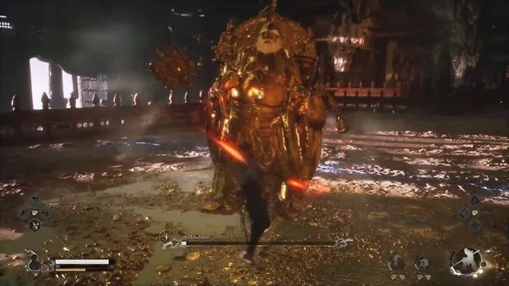 Теперь вы попадаете в другую часть храма, где снова встречаетесь с боссом. Одной из первых его новых способностей, с которой вы столкнетесь, является трансформация в позолоченную защитную форму. В этом состоянии ваши атаки будут отскакивать и он продолжит атаковать, не теряя этой неуязвимости. Чтобы пробить его защиту, используйте тяжелые атаки. Накопленные очки фокусировки позволят ненадолго ошеломить Желтобрового, но даже без них тяжелые атаки предпочтительнее легких, которые будут просто отброшены.