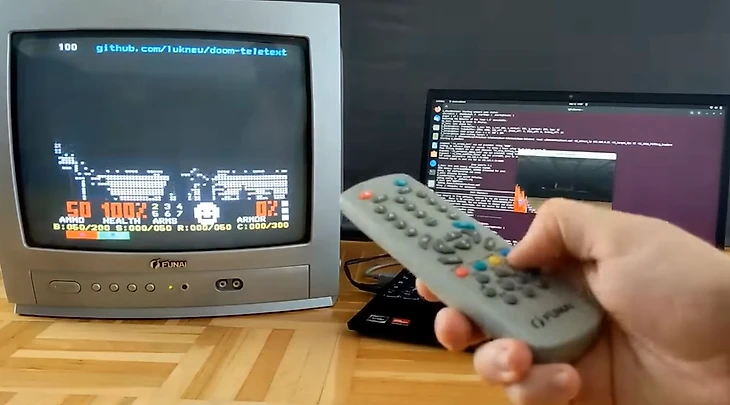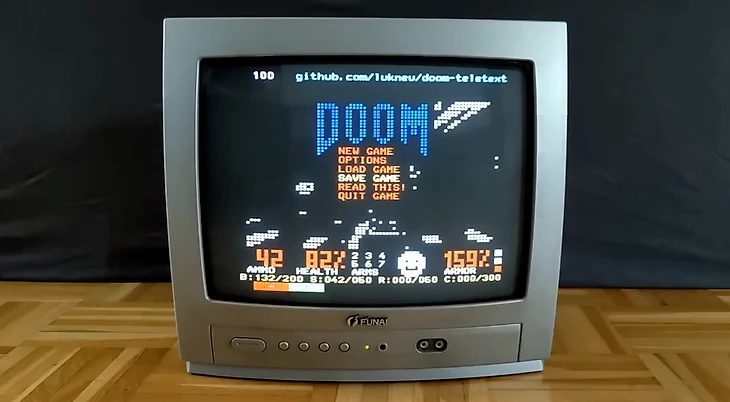8. Еще один энтузиаст запустил Doom с помощью телетекста – службу, обеспечивающую передачу текста и простых изображений. Управлять игрой можно с пульта.