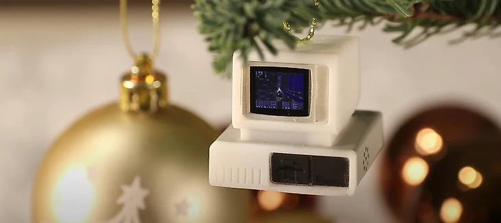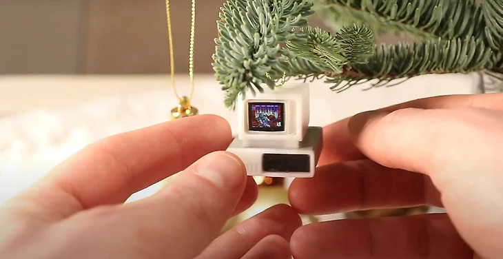 2. Ютубер Sprite_tm встроил Doom в елочную игрушку. Украшение он распечатал на 3D-принтере – оно представлено в форме первого массового персонального компьютера IBM PС. Изделие фанат начинил маленьким ЖК-дисплеем, процессором и батарейкой.
