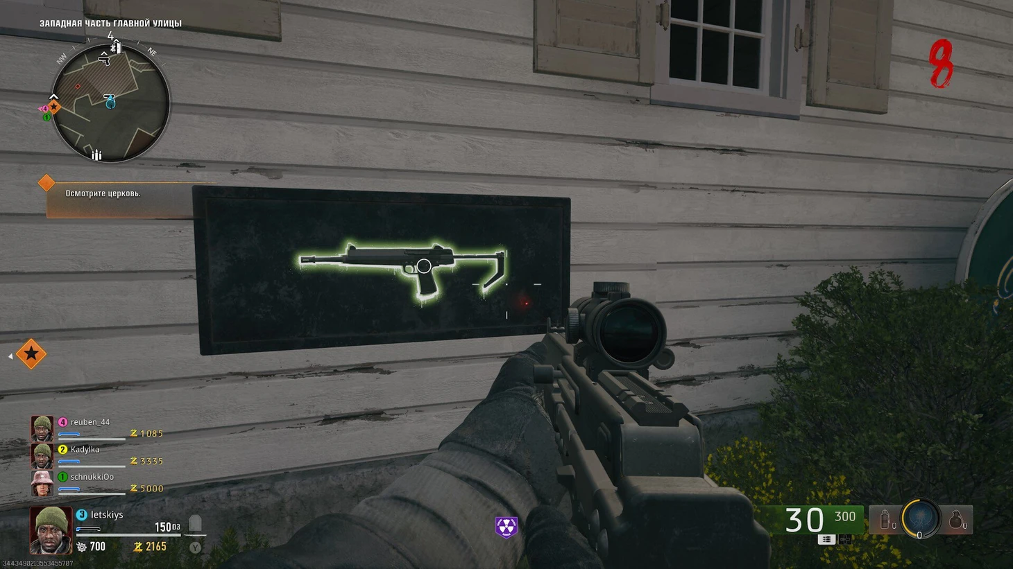 Вы начнете раунд с пистолетом. Урон низкий, патронов мало. Поэтому поскорее обзаведитесь нормальным автоматом: как вариант, снимите его с узоров на стене.